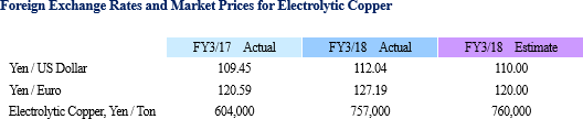 The market price of copper, which has a significant impact on product prices, fell in the fourth quarter, but rose steadily from the start of 2017 and stayed at a high of around 800,000 yen/ton in the third quarter. The total weight of copper sold decreased slightly, but segment sales were 23,535 million yen, up 21.7% year on year due to higher sales prices. Operating income was 699 million yen, down 16.0% from the previous term, in which copper price grew significantly.