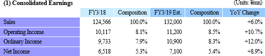 Note: Estimates are those of the Company. From the fiscal year ended March 2016, the definition of net income has been changed to net income attributable to parent company shareholders (the same goes for the rest of the report).