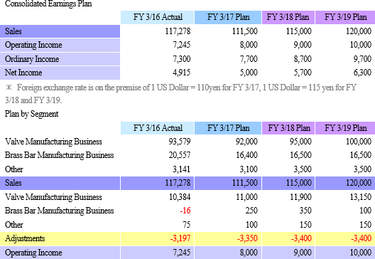 Profitability is expected to improve for the valve manufacturing business, but the Company is carefully watching the brass bar manufacturing business, which is largely affected by copper market conditions.