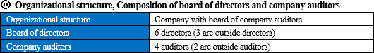 In addition, we are working to enhance corporate governance through various measures to realize prompt, efficient, sound and highly transparent management based on requests from stakeholders and social trends to strengthen management efficiency and compliance.